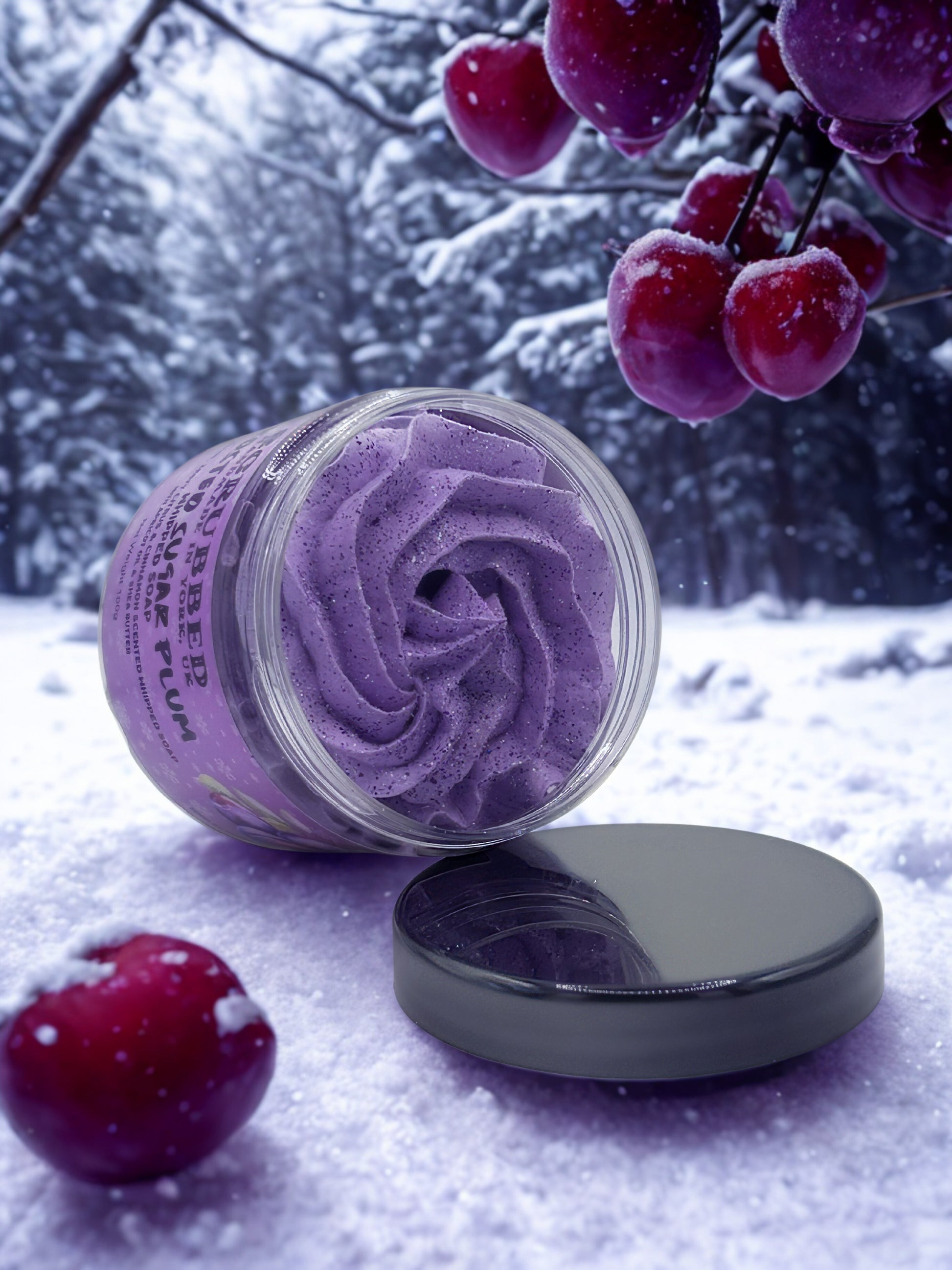 Let Frosted Sugar Plum Whipped Soap whisk you away to a winter wonderland — where sweet fruit, soft spice, and creamy bubbles create the perfect seasonal escape.